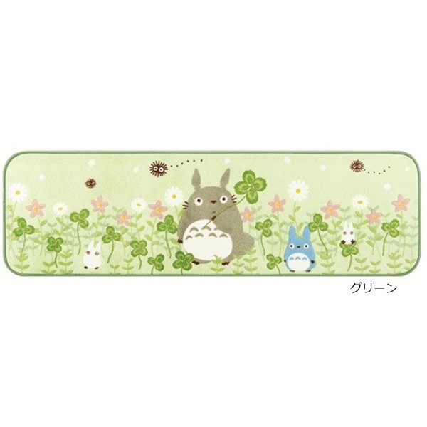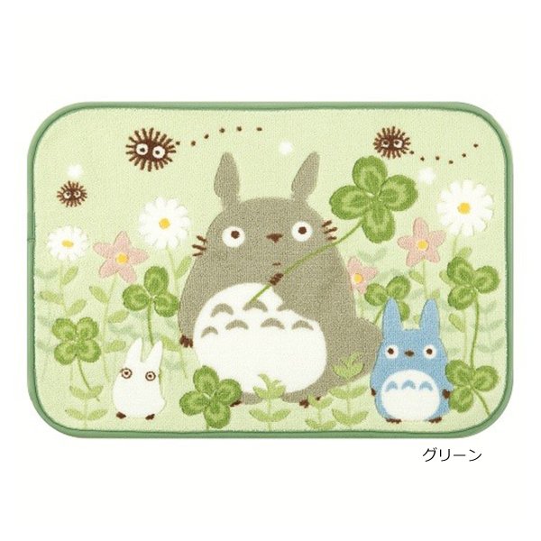 バスマット:約45×65cm キッチンマット:約45×150cm アクリル100% 四つ葉のクローバーを持つトトロと仲間たちののどかな雰囲気が素敵なバスマットとキッチンマットのセットです!ナチュラルでやさしいいろあいがおうちの中を明るく演出してくれていやしてくれます!裏面は滑りにくい加工がされています!日本製です。