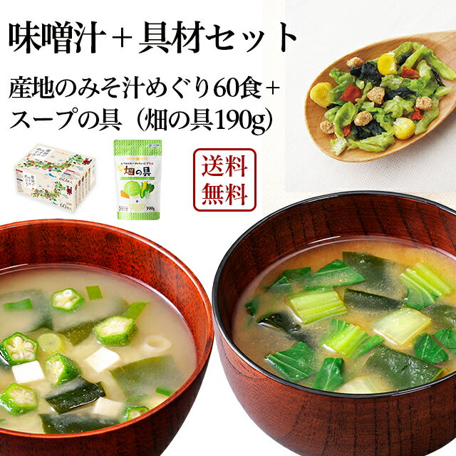 【送料無料】味噌汁60食アソートBOX&乾燥野菜セット産地のみそ汁めぐり60食(1箱)&畑の具(1袋)